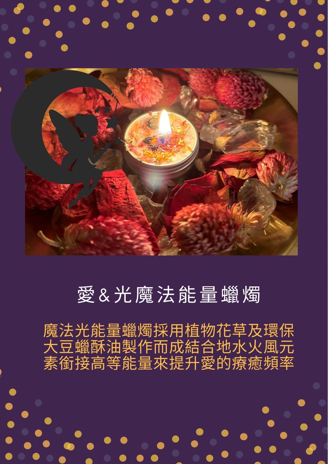 🌿 能量加持 — 每一顆蠟燭皆由手工製作,並透過缽音淨化與佛母祝福,充滿神聖能量